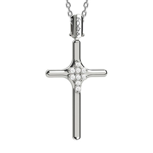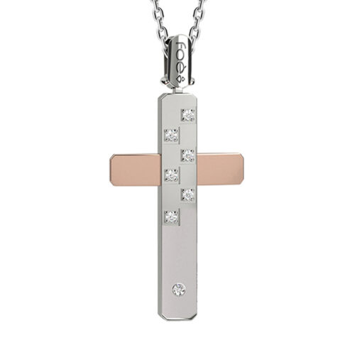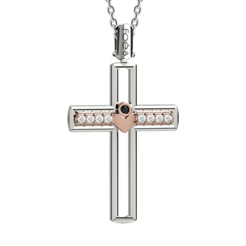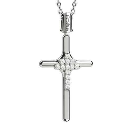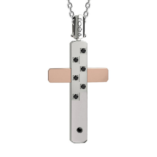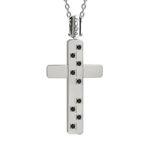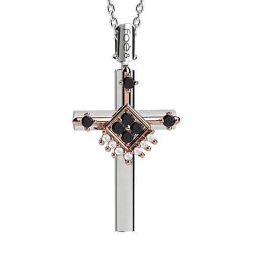 Croce in oro 750% con diamanti bianchi e diamanti neri