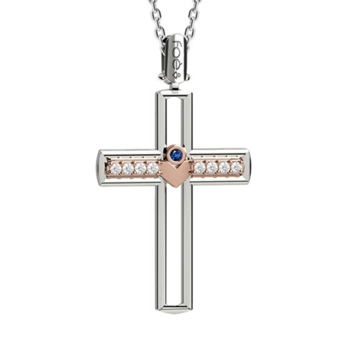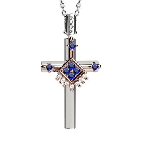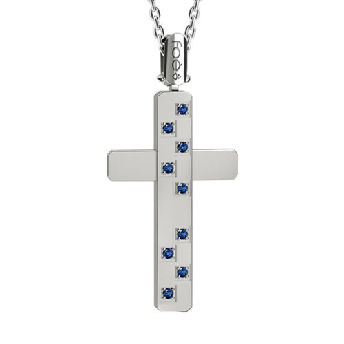 Croce in oro 750% con diamanti bianchi e zaffiri