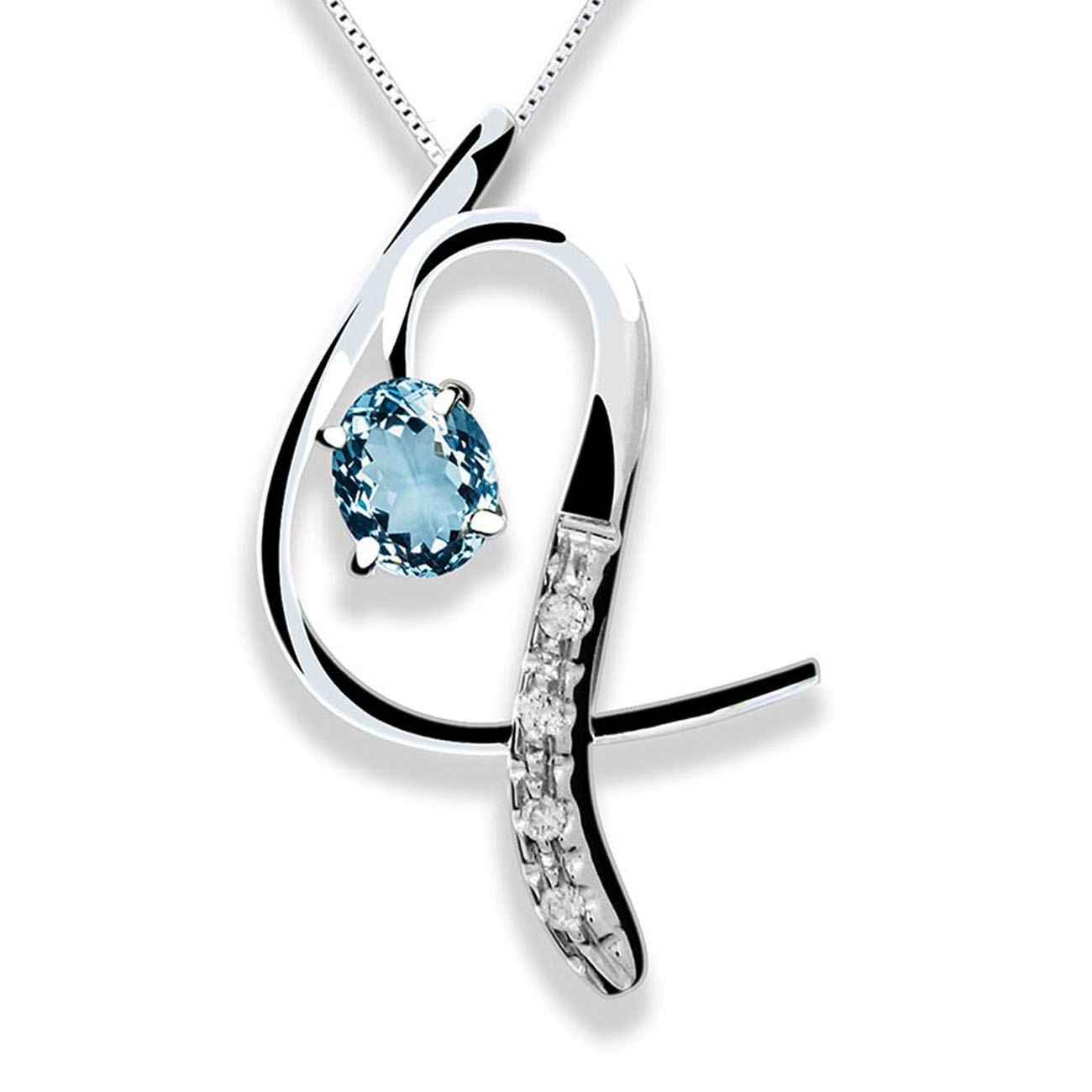 Hai una personalità estrosa? Dai un’occhiata a questo pendente. Dalle linee intrecciate ed impreziosite da diamanti e acquamarina, parlano di una donna dal forte spirito decisionale e che sa differenziarsi.