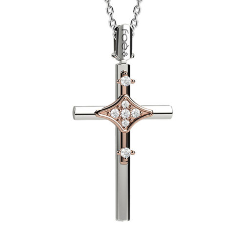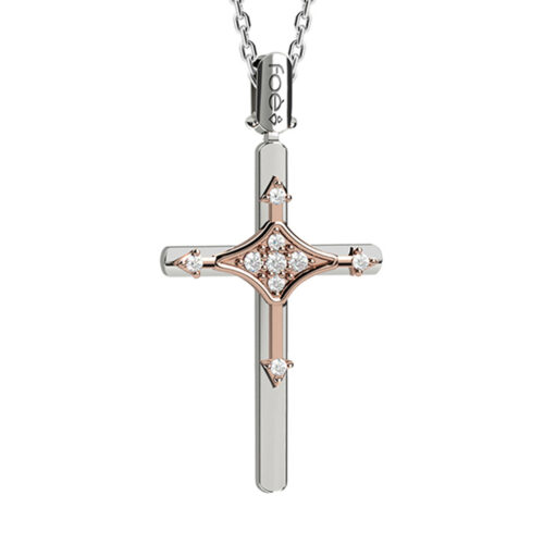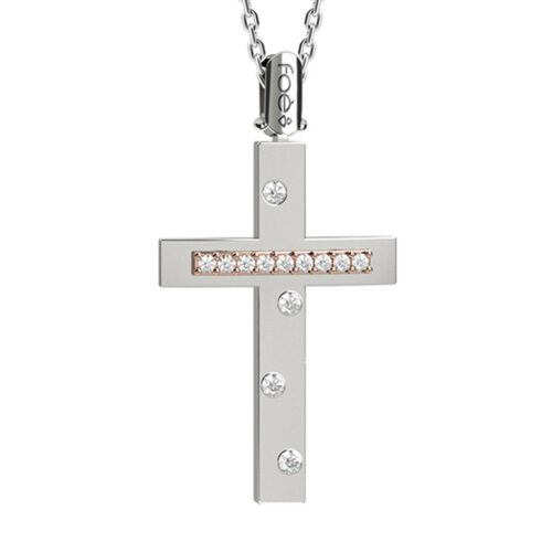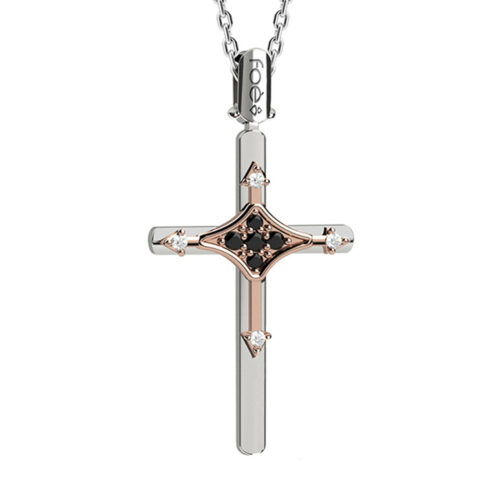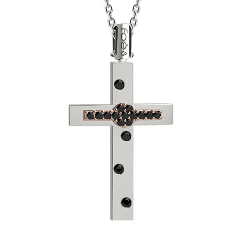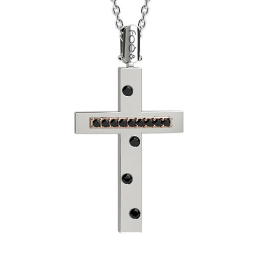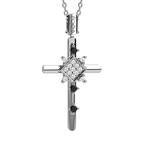 Croce in oro 750% con diamanti bianchi e diamanti neri