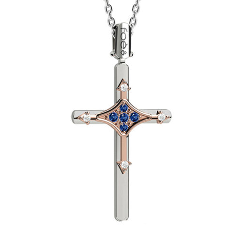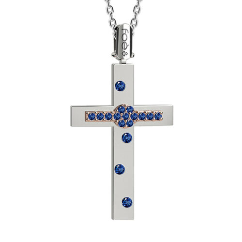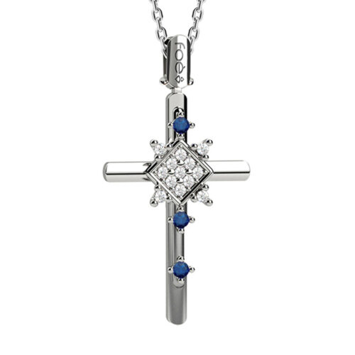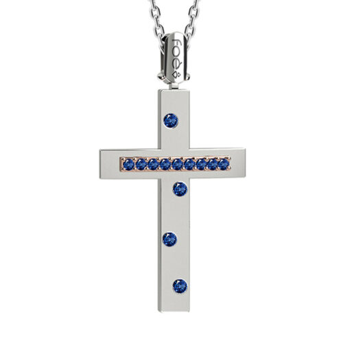 Croce in oro 750% con diamanti bianchi e zaffiri