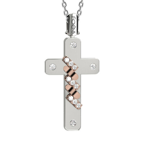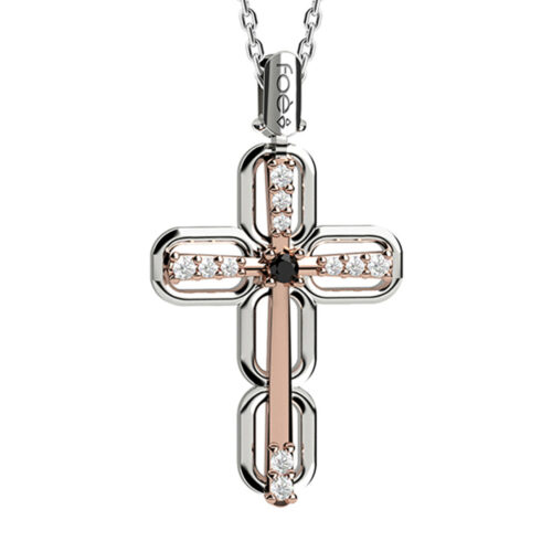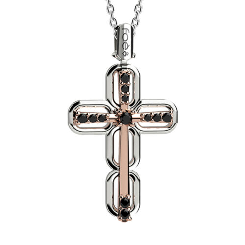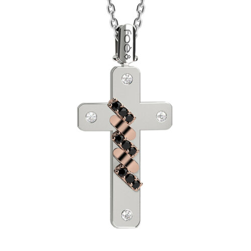 Croce in oro 750% con diamanti bianchi e diamanti neri