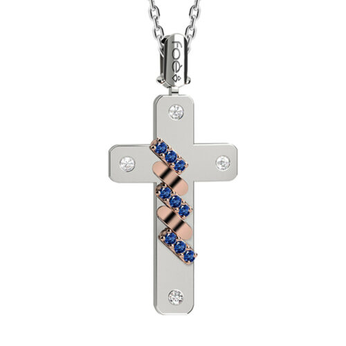 Croce in oro 750% con diamanti bianchi e zaffiri