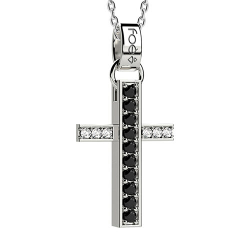Croce in oro 750% con diamanti bianchi e diamanti neri
