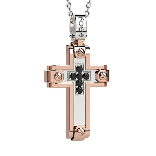 Croce Foèuomo in oro bianco e rosa 750% con diama...
