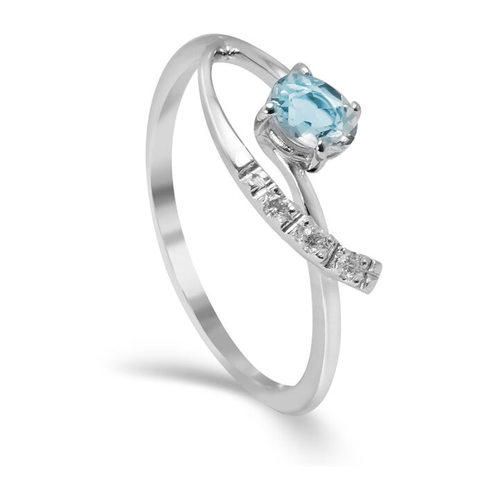 Anello acquamarina Foègioielli in oro bianco 750% con diamanti ct 0.025ca Colore G Purezza Vs e acquamarina naturale ct 0.35ca Questo prodotto verrà spedito e corredato da astuccio, garanzia e shopper originali Foègioielli Referenza A140/M14 Misura 14