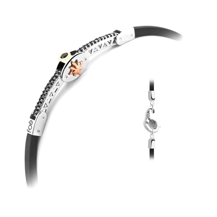 Bracciale Foèuomo in oro bianco e rosa 750% e caucciù con diamanti neri ct 0.46caQuesto prodotto verrà spedito e corredato da astuccio, garanzia e shopper originali FoèuomoReferenza BRU014N
