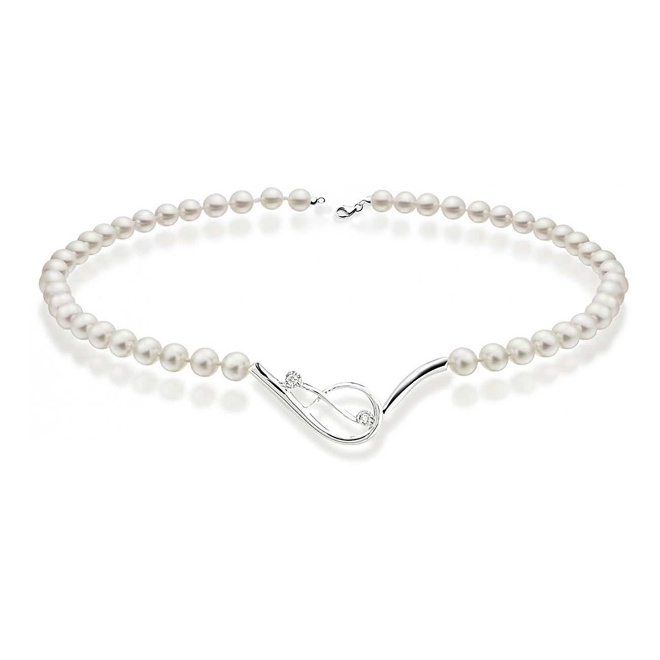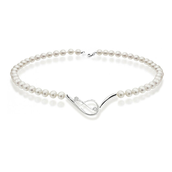 Collana perla Foègioielli in oro bianco 750% con diamanti ct 0.025ca Colore G Purezza Vs e perle coltivate fresh water 5,5-6ca Questo prodotto verrà spedito e corredato da astuccio, garanzia e shopper originali Foègioielli Referenza CLP77