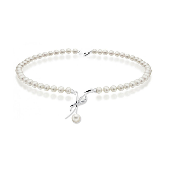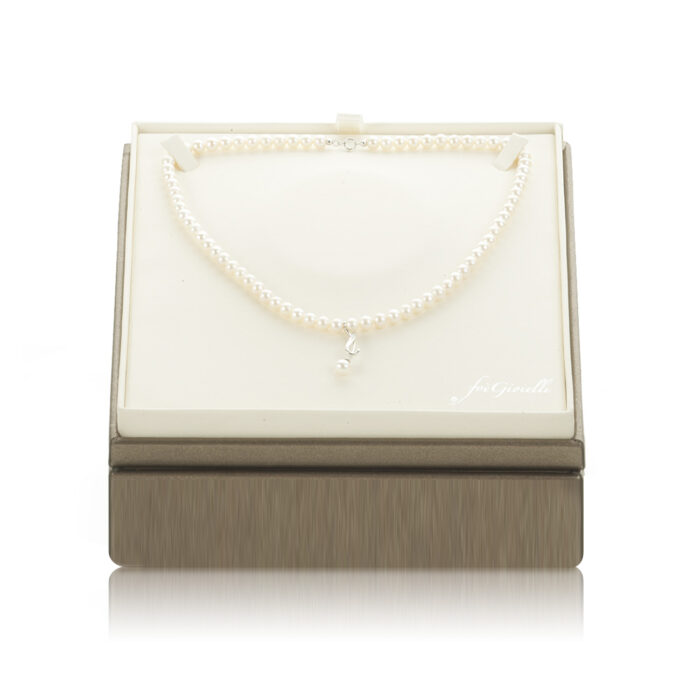 Collana perla Foègioielli in oro bianco 750% con diamanti ct 0.03ca Colore G Purezza Vs e perle coltivate fresh water 5,5-6ca Questo prodotto verrà spedito e corredato da astuccio, garanzia e shopper originali Foègioielli Referenza CLP16